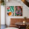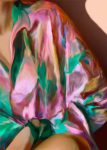 Channelling the decade of daring colours and high shoulder pads comes 1986 by Copenhagen based artist Misfitting Things. A kaleidoscope of pinks, purples and greens mix together to form a captivating compilation of colour and texture as a single figure adorns this loud shirt with a sense of ease. Created using a mixture of AI generated imagery and the artists own hand, the composition is both nostalgic whilst being created in our current age.