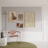 Thin brown line work painted atop a linen fabric backing creates the composition of Antic Ideal 01 by the Marseille based artist Avrandinis. The forms of abstracted vases and female figures intertwine and overlap, creating a rich yet simple series of lines. Graphically strong, yet soft in expression, the work allows space for ideas to grow within forms that are completed by natural pigments and textures.
