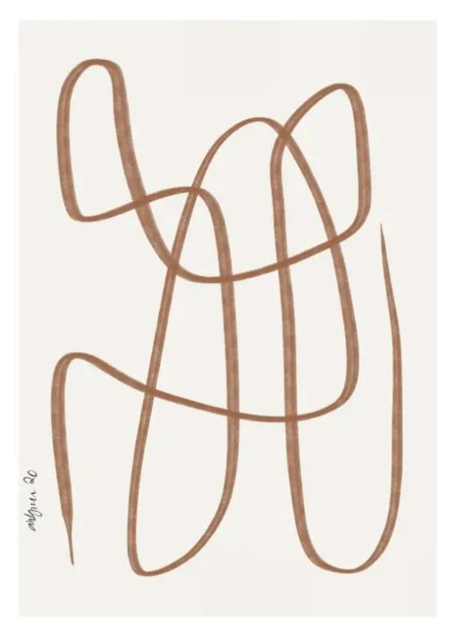 Taking a line for a walk is just about all we need to say about this work by Swedish artist and designer Robin Ahlgren. Different Ways Brown is a study in simplicity – a single deep brown line is curved and intertwined creating a piece that contains a sense of self-dialogue.