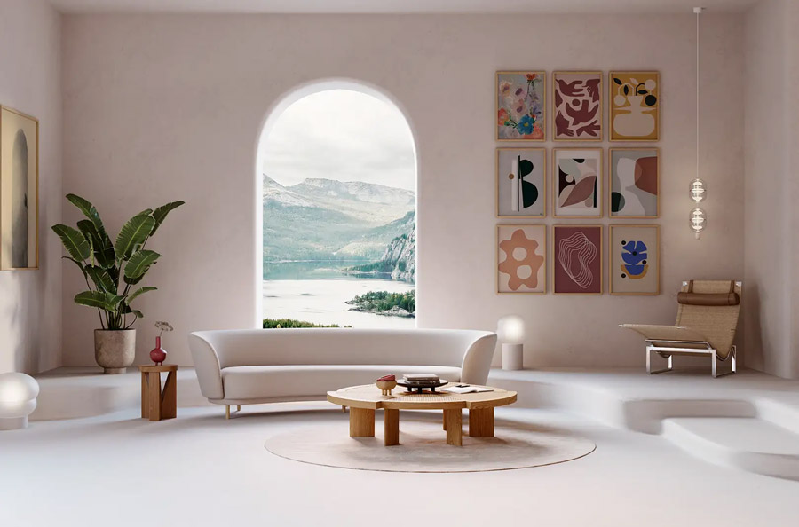 A single flower in warm yellow and vibrant indigo blue forms the centerpiece of Flor Azul by Mexican artist Berenice Hernandez. Recalling the streets of her youth, the motif is a graphic representation of the plant filled urban landscapes she grew up around in southern and central Mexico. Set against a warm backdrop in beige, the flower floats in and around four black dots that ground the composition. A simple, yet bold expression of colour and life.