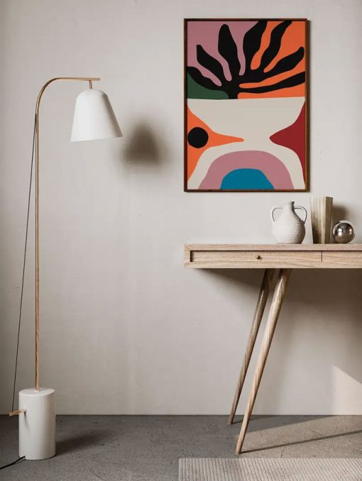 Overlapping, intertwined and immersive, Flora brings the organic vibrancy of Mexico’s plants to life. Local artist Berenice Hernandez has combined a background of orange, pink and white, with a hit of orange, red, blue and black to form an organic and expressive composition. Both surreal and soothing, the soft shapes and vibrant colours uniquely combine Hernadez’ hand painted and graphic approach to form.