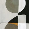 A collection of rounded forms combine to create The Voice Within 02 by Dutch artist Mae Studio. Featuring the artists unique use of positive and negative space, shades of black, white and grey flow over one another, softening a series of defined lines that divide the composition. A single striking sliver of yellow provides a visual point of interest within this calming centerpiece.