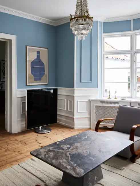 The abstracted form of an object in blue creates the centrepiece of Vessel 03 by Icelandic artist Kristín Sigurðardóttir. Composed through digital collage from hand painted paper, a simple blue vessel appears to be sliced into its parts, delicately stacked together to create an intriguing silhouette. Placed against a backdrop of neutral grey tones, the object stands out as a combination of organic yet rigid forms.
