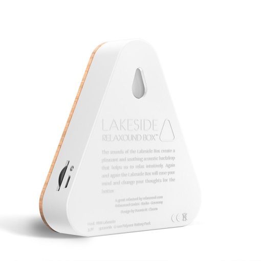 The Relaxound Lakesidebox conjures up short moments of relaxation in your life. Soothing nature sounds take you gently to the shore of an idyllic forest lake: water splashes, birds chirp, ducks cackle, crickets chirp. You will immediately feel how your head and body relax intuitively.