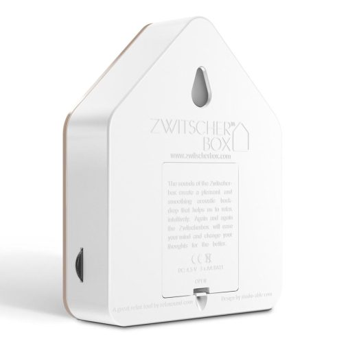 You activate the bird concert as you pass by; if no new impulse follows, it fades out after two minutes. Whether at home or in the office, in the bathroom or hallway, you can place your Zwitscherbox anywhere or simply hang it on the wall.