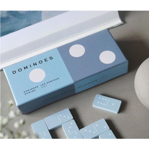 Our Domino set includes easy to read instructions in English, French and German. The set has wooden game pieces. Recommended for ages 4+ and up to 6 players.
