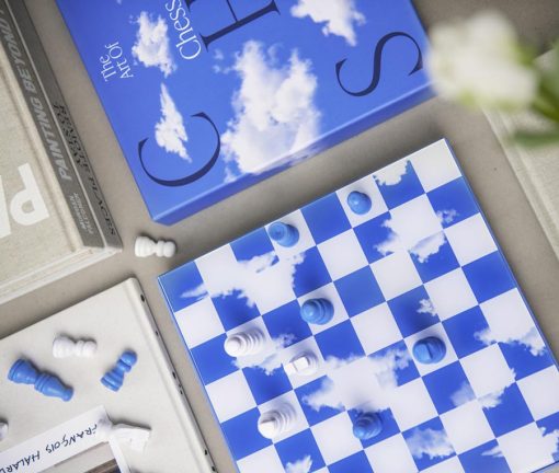 A beautiful special edition of our Classic Chess in a spectacular cloud design. The pieces and board are made of wood and a thin layer of acrylic is mounted on the board’s surface giving the pieces an effective reflection. The box is made of high quality art paper with a printed cloud formation and a foil stamp in navy and white. This game is part of our concept ”Coffee Table Games” and will be a decorative piece wherever you chose to place it.