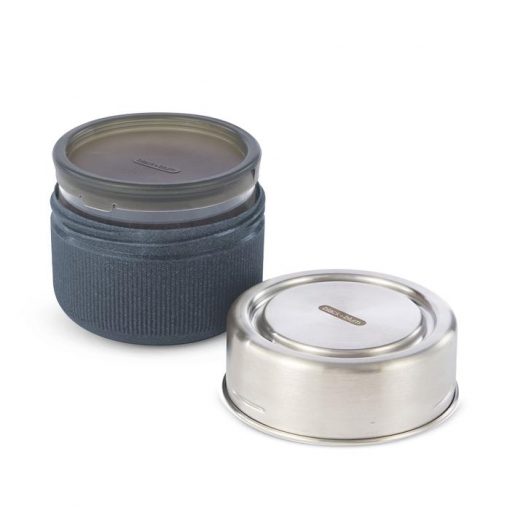 A lightweight 600ml / 20 fl oz Borosilicate glass bowl with a protective and insulating (keep cool) sustainably sourced wood fibre base and Stainless steel lid.