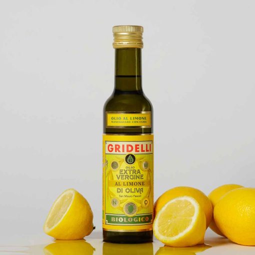 Discover our exquisite Lemon-Infused Organic EVOO, made from Leccino olives in Marche. Ideal for chicken, fish, salads, and even pancakes.