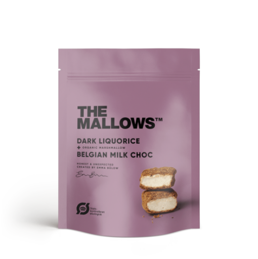 Ljúffengu sykurpúðarnir frá The Mallows súkkulaði húðaðir með belgísku súkkulaði og lakkrís dufti.