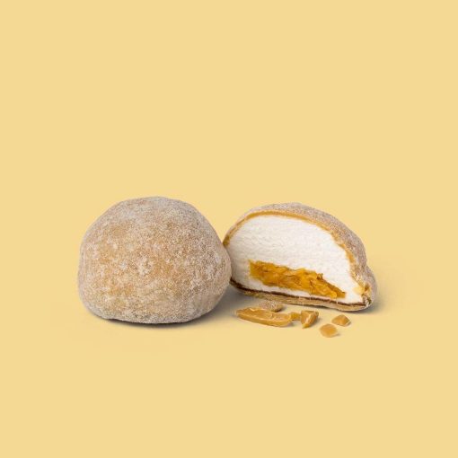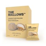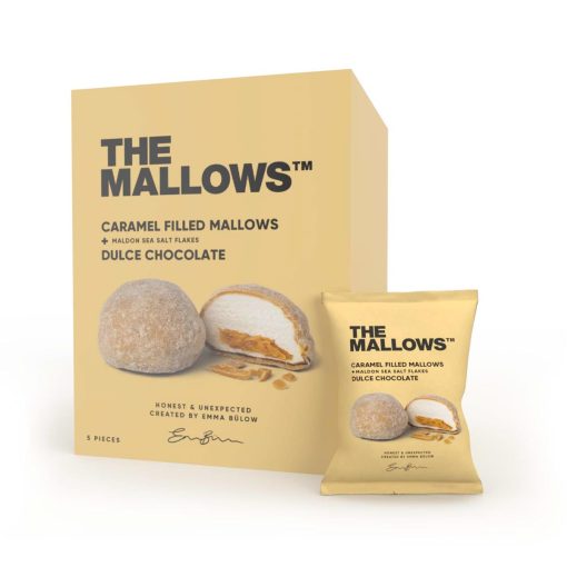 Dulce Chocolate + Maldon Sea Salt Flakes are caramel-filled marshmallows coated with rich, caramelized white chocolate – also known as the popular dulce chocolate. The soft core melts with the vanilla marshmallow and the crunchy pieces of sea salt at the first bite – and compliments the sweet dulce chocolate perfectly.