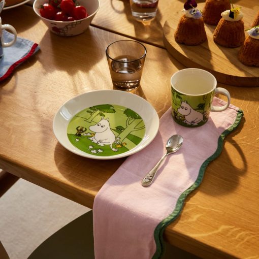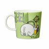 Moomintroll is a happy and caring fellow. Snufkin is his best friend. Always curious and wanting to learn new things, he loves to explore the Moominvalley in hopes of finding exciting objects and meeting new creatures. In the Moomintroll Grass-green Moomin mug from the Moomin Classics collection, Moomintroll has once again found something new to wonder about. It’s one of the tiny Martians that have landed in Moominvalley.