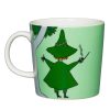 You’ll recognise the vagabond Snufkin from his green wide-brimmed hat, harmonica, and the philosophical thinking he often shares. Little My is Snufkin’s half-sister. In the green Snufkin Moomin mug from the Moomin Classics collection, we see a confident Snufkin wearing his trademark clothes.