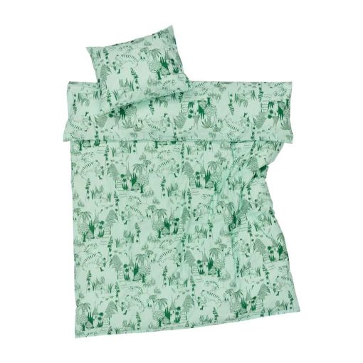 Do you dare to sleep surrounded by tigers? Moominmamma plants tropical seeds that transform the valley into a jungle. To complete the jungle atmosphere Stinky decides to set the animals free from the zoo. For the tigers the flourishing valley feels just like home. Moomin bedset 140x200cm Garden party, organic cotton.
