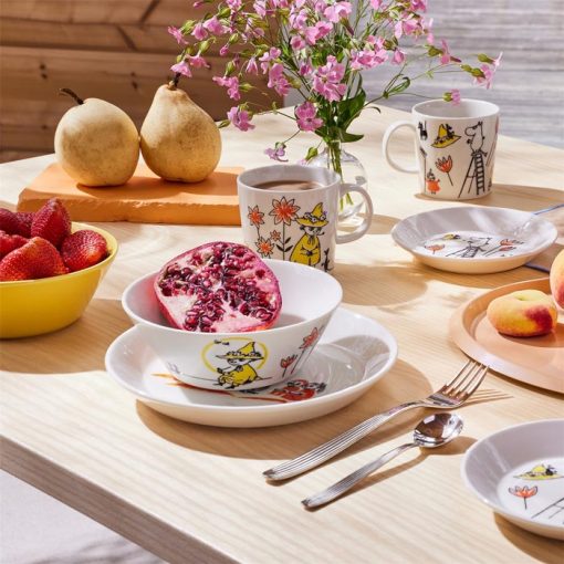 This Moomin by Arabia collection was inspired by the illustrations Tove Jansson drew for the Finnish Red Cross in 1963. For each Snufkin bowl sold, 1 € will be donated to your national Red Cross in support of the power of kindness. Part of the Moomin ABC collection.