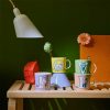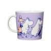 On the L mug, in need of variety in their life, Moominpappa and Moominmamma move into a cave but agree to return home when the children find them. The illustration on the back side of the larger mug is inspired by the comic “Moomin and Family Life”. Moomin by Arabia, mug 0.4 l, ABC L