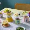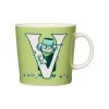 On the V mug, Fuddler falls in love with Mymble but with no luck—she has her eyes on an eccentric psychiatrist, Dr Hatter. The illustration on the back side of the larger mug is inspired by the comic “Fuddler’s Courtship”. Moomin by Arabia, mug 0.4 l, ABC V
