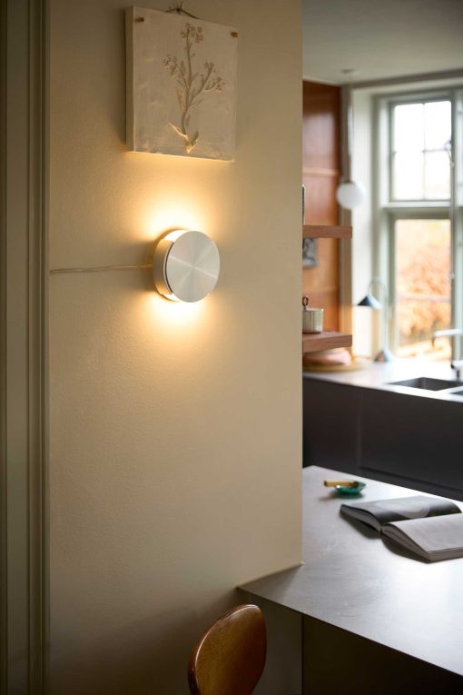 Unlike traditional lamps, Rotate takes full advantage of the wall as a canvas, allowing light to be sculpted into unique shapes. It offers a Mood-setting, sculptural experience in hallways and living areas. As Thomas puts it – “There’s something incredibly cool about the graphic expression you can create with the circle, the light, and the shadows.”