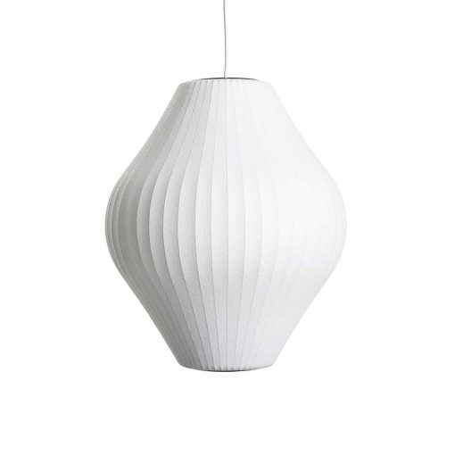 Designed by George Nelson in 1947, the Nelson Bubble Pendant Lamp series comprises a range of pendant lighting solutions with varying spherical silhouettes. Inspired by a set of silk-covered Swedish hanging lamps, the lamps’ organic shapes appear to delicately float overhead, offering a soft and atmospheric light. Available in Ball, Pear, Apple, Cigar, Saucer, Lantern and Propeller variants in different sizes.