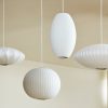 Designed by George Nelson in 1947, the Nelson Bubble Pendant Lamp series comprises a range of pendant lighting solutions with varying spherical silhouettes. Inspired by a set of silk-covered Swedish hanging lamps, the lamps’ organic shapes appear to delicately float overhead, offering a soft and atmospheric light. Available in Ball, Pear, Apple, Cigar, Saucer, Lantern and Propeller variants in different sizes.