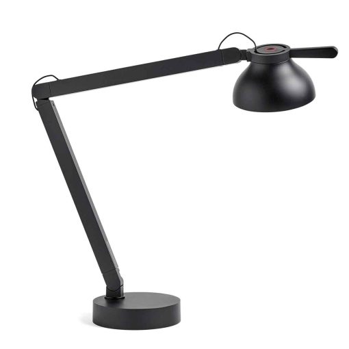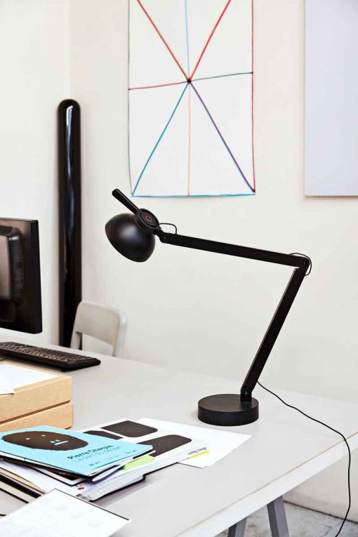 Pierre Charpin’s PC lamp series is a family of refined and precisely engineered multifunctional task lamps that can be used in a number of ways – free standing, desk, clamp and wall mounted. The lamp has a highly functional design featuring a polycarbonate head, aluminium arms and ABS base, with concealed gas springs that enable the arms and head to hold their position wherever they are moved. The integrated touch dimmer switch is equipped with a memory function and automatically turns off after five hours. The PC double arm lamp features double swing arms and is available in clamp, wall bracket, table base and table insert variants. It is suitable for both private and office environments and qualified for contract use as a task light.