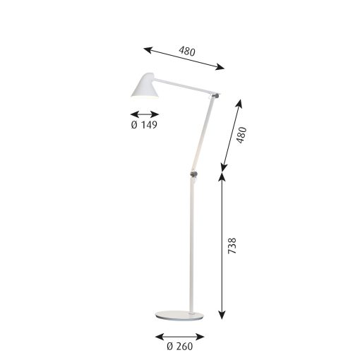 The NJP series was designed by Oki Sato, founder of nendo design studio, with the intention of producing a new interpretation of the classic anglepoise lamp – with all its familiar details – in a contemporary design, featuring functions adapted to modern working life, both in the office and at home. The NJP Floor lamp’s flexible head and arms provide exceptional adjustability, which is often lacking in standard floor lights. It is well-suited for use as a reading light beside an armchair or sofa, as the flexible design means the light can easily be adjusted to provide optimal lighting. It features an LED light source and is designed with the source positioned high up as to avoid dazzling and unpleasant lighting. One refined yet practical detail is its chimney-shaped head reflecting some of the light through the rear and therefore illuminating the top of the arm – while allowing the heat from the light source to escape.