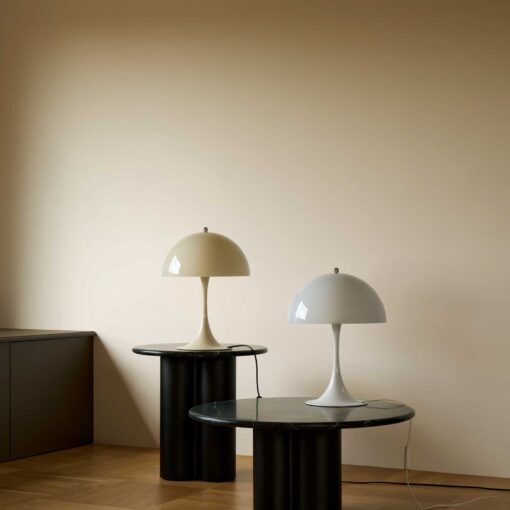The iconic Panthella lamp from 1971 is one of the most popular lamps by designer and architect Verner Panton (1926-1998). When the Panthella designs saw the light of day, Verner Panton designed them with a translucent opal shade. This original finish was later reintroduced, and combined with materials gave the Panthella an elegant and contemporary look. Panthella 320 Table Lamp produces an appealing and atmospheric light, illuminating the surroundings softly and comfortably.