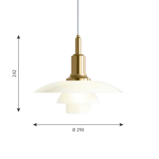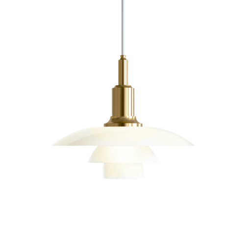The fixture is designed based on the principle of a reflective three-shade system, which directs the majority of the light downwards. The shades are made of mouth-blown opal three-layer glass, which is glossy on top and sandblasted matt on the underside, giving a soft and uniform light distribution.