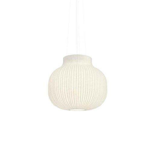 The Strand Pendant Lamp is designed with soft, playful forms for a modern expression. The design provides both diffused lighting and direct lighting, the latter through its top and bottom opening. The design is made in a sprayed cocoon material that consists of tiny strands for a complex, intriguing structure that, paired with its modern form, gives the Strand Pendant Lamp an almost cloud-like appearance. With its cocoon material filtering light through for a warm, comfortable glow, the Strand Pendant Lamp hovers lightly in space, bringing comfort, harmony and a refined sensitivity to any room.
