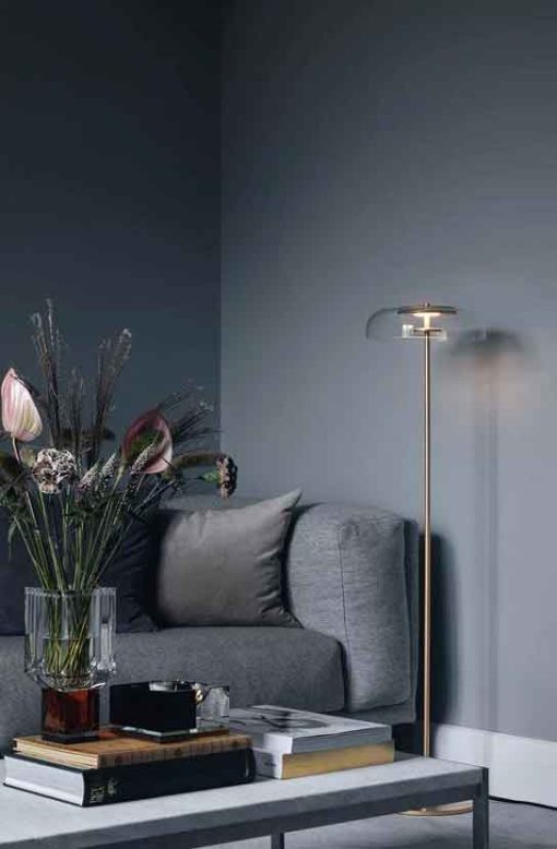 Blossi Floor is designed with a sleek golden metal structure and a clear glass shade. A special developed LED disc reflects the light in the mouth-blown glass shade and the golden metal finish , spreading a warm and sophisticated light. The Blossi collection is now produced in a low voltage version with an easily replaceable LED card, offering a flicker-free light and meeting the latest EU lighting energy efficiency regulation. With a combination of simplicity, aesthetics and functionality, Blossi Floor can be placed in any room of the home. Cable with dimmer and EU + UK plug.