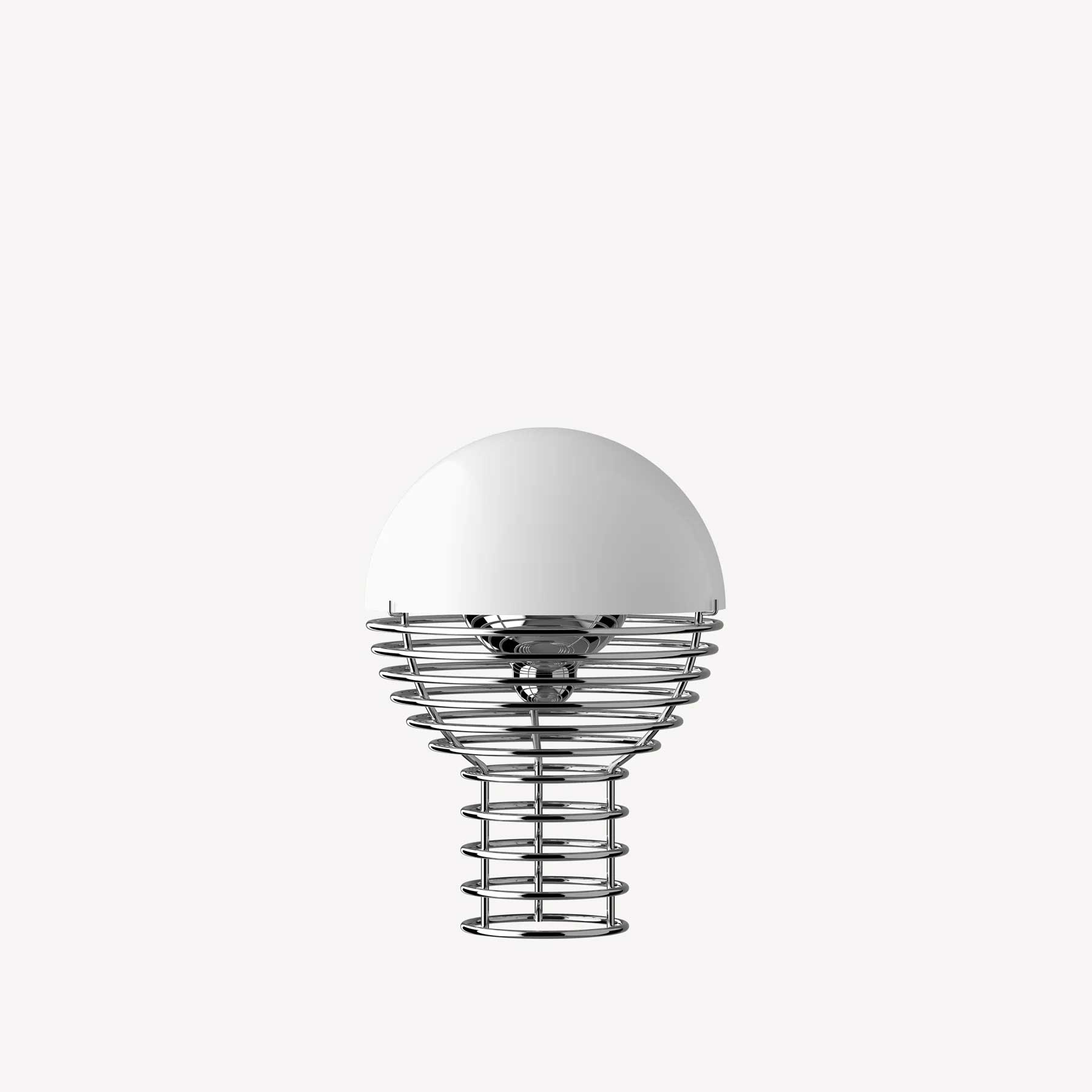 Known for its striking open wire frame and luminous dome-like shade, the Wire Lamp has long stood out among Verner Panton’s lighting design. Designed in 1972, its unique blend of industrial materials and poetic form made it an instant classic.