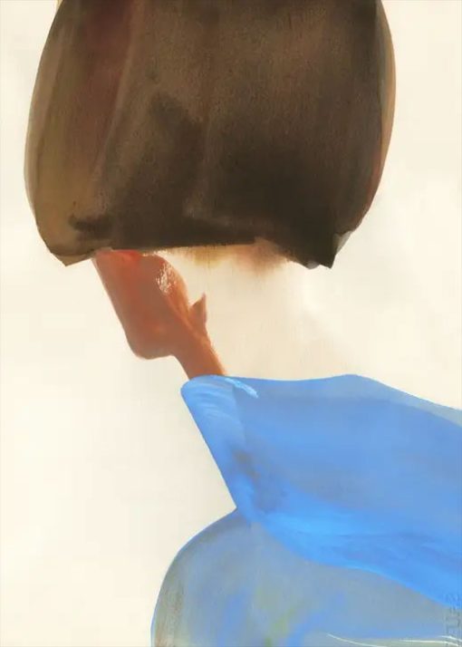 The Blue Cape takes Amelie Hegardt’s familiar impressionist style to encapsulate an obscured figure in vibrant blue. Each brushstroke adds a sense of depth and character to each of her depictions of the fashion world in which she works.