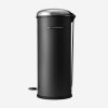 The Vipp17 pedal bin is the largest of the Vipp bins, ideal for use in kitchens. This pedal bin is equipped with a removable inner bin, a lid that ensures air-tight closure, and a damper mechanism that provides smooth closing of the lid. A rubber ring at the base protects floors.