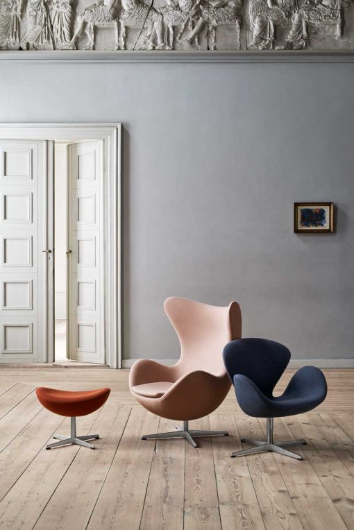 The Egg™ is one of the triumphs of Jacobsen’s total design – a sculptural contrast to the building’s almost exclusively vertical and horizontal surfaces. The Egg sprang from a new technique, which Jacobsen was the first to use; a strong foam inner shell underneath the upholstery. Experience originality and timeless design with the Egg in fabric and indulge in its sculptural curves that will last for generations. When Arne Jacobsen in the end of the 1950ies designed the SAS Royal Hotel in Copenhagen, he too created the Egg™, the Swan™, the Swan Sofa™, the Series 3300™ and the Drop™. With this furniture Arne Jacobsen wrote history within Danish design worldwide.
