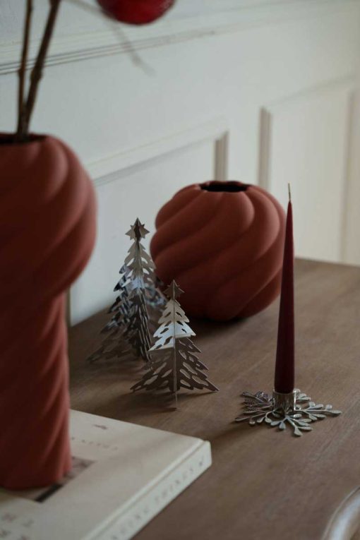 Decorate the Christmas table or the coffee table, with the beautiful Pinetree in metal, designed by the Danish artist Stinne Bo. Pinetree metal, comes in two heights and can be combined with each other. The same pattern can be found on Paper Pinetree. Pinetree in metal can be folded up and flat packed after the season.
