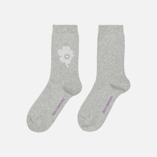 The Pirtti ankle socks are made of a cotton blend terry knit and they feature flowers from the Unikko pattern flower.